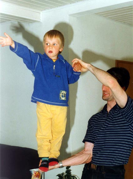 Friedi - und auch sein Schatten - machen Akrobatik mit Jörg!!!